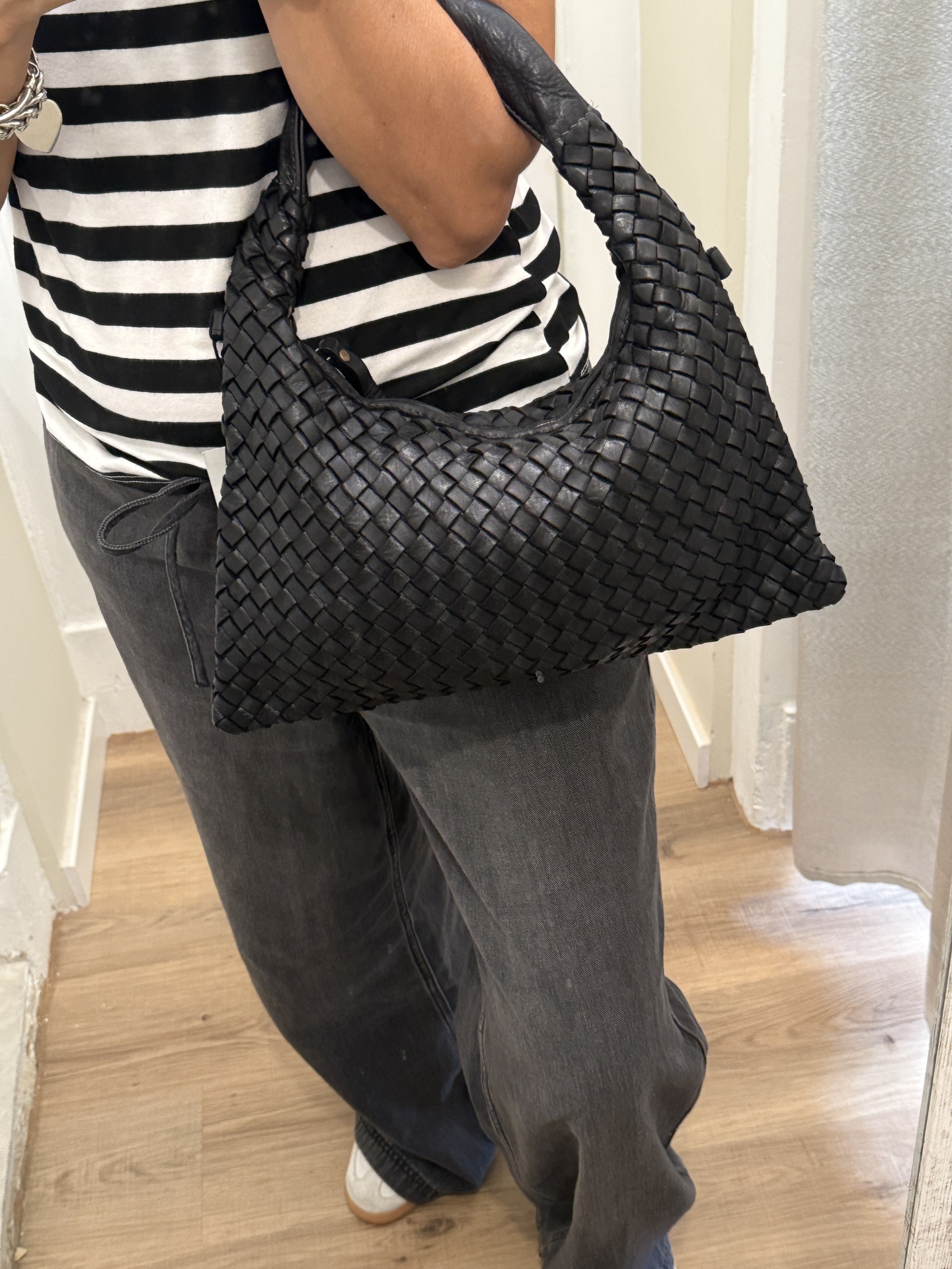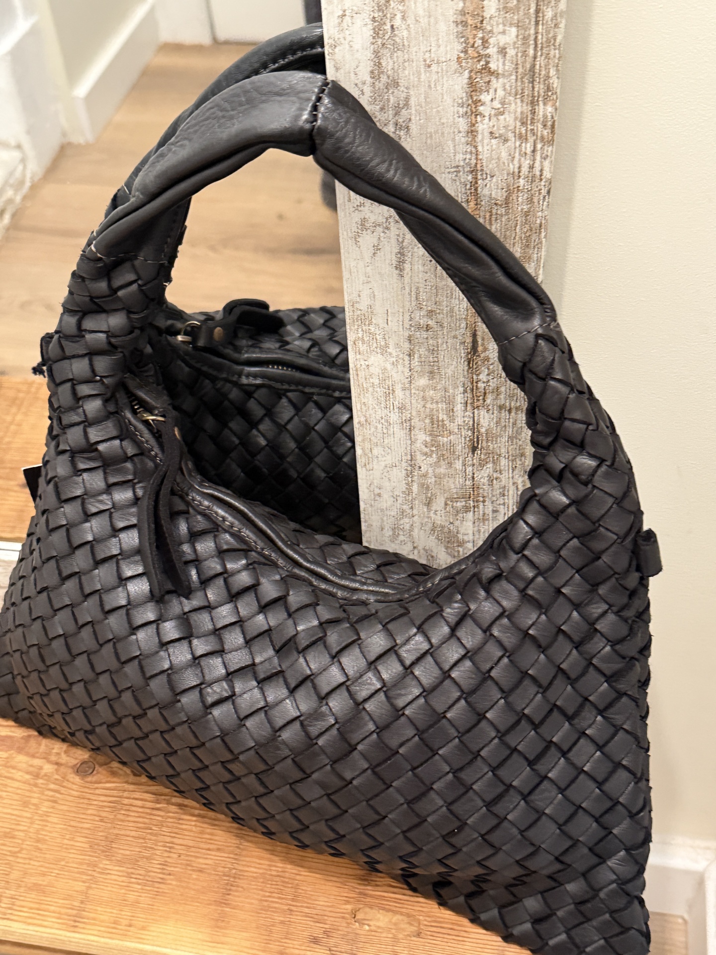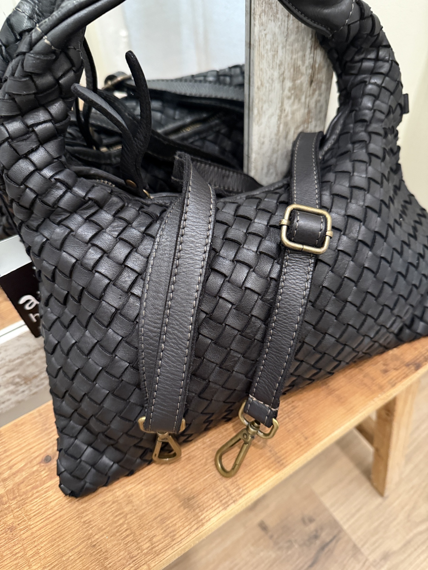 Mala entrançada em pele 79,00 € Desconto de %. Partilhar Comprar Contactar Mala de ombro em pele entrançada com fecho traz alça tiracolo em pele (ajustável ao tamanho) bolso interir com fecho Tags malaPelepretapretoentrançadaombromala de ombro